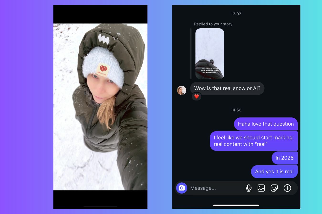 The other day I posted a simple story of me walking in the snow and got a reply asking if it was real or AI. That question says a lot.