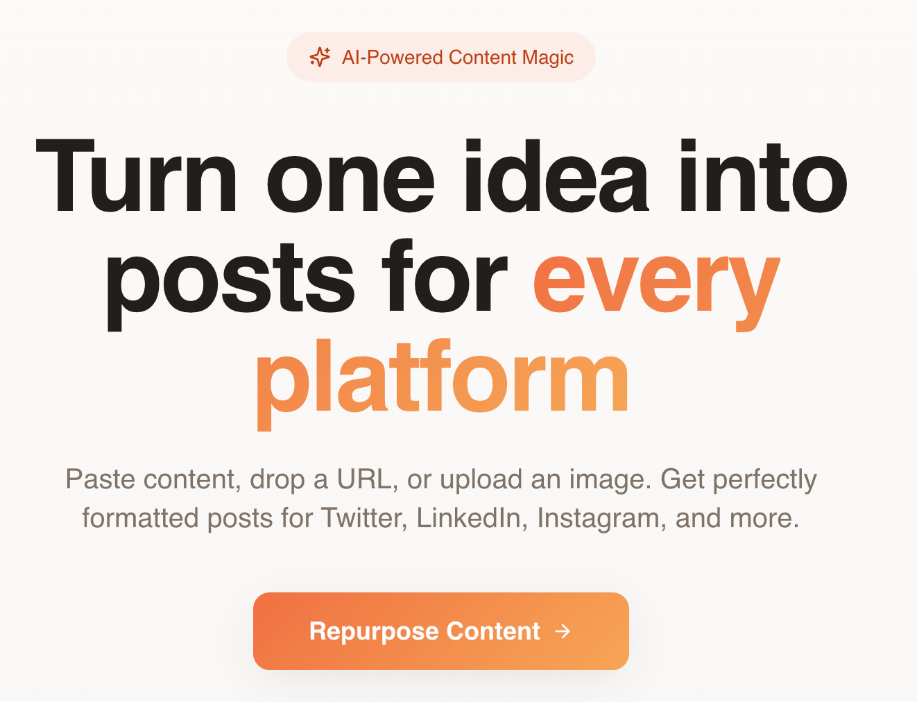 Try this very simple content repurposing tool I built in a matter of minutes. And imagine what I could build if I actually spent time on this: